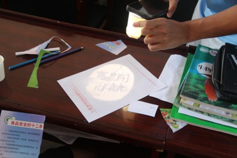 (圖為團隊成員演示紙杯投影的場景 高瑩雪攝)