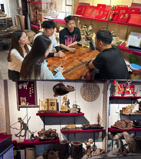 三、“古韻新聲:濰坊昌樂木雕的傳承與發展” 濰坊昌樂的木雕以其古樸典雅的風格聲名遠揚。實踐服務團在此深入了解了木雕產業的發展現狀與市場需求。團隊成員與企業負責人就木雕文化的創新發展展開了深入探討,并提出利用數字化、可視化的營銷手段拓展市場、提升品牌影響力的建議,獲得了企業方的高度認可。