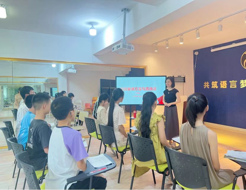 7月17日,卜洪漩老師帶領實踐團來到巢湖市巢湖北路社區開展“巢湖方言與普通話”專題講座。7月18日,實踐團跟隨安徽省普通話測試員文春鳳老師來到清溪鎮清溪社區開展推普講座。