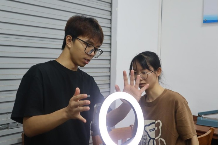 圖為薪火鄉傳隊員傳授村委會工作人員電商直播技能。林淑儀 供圖