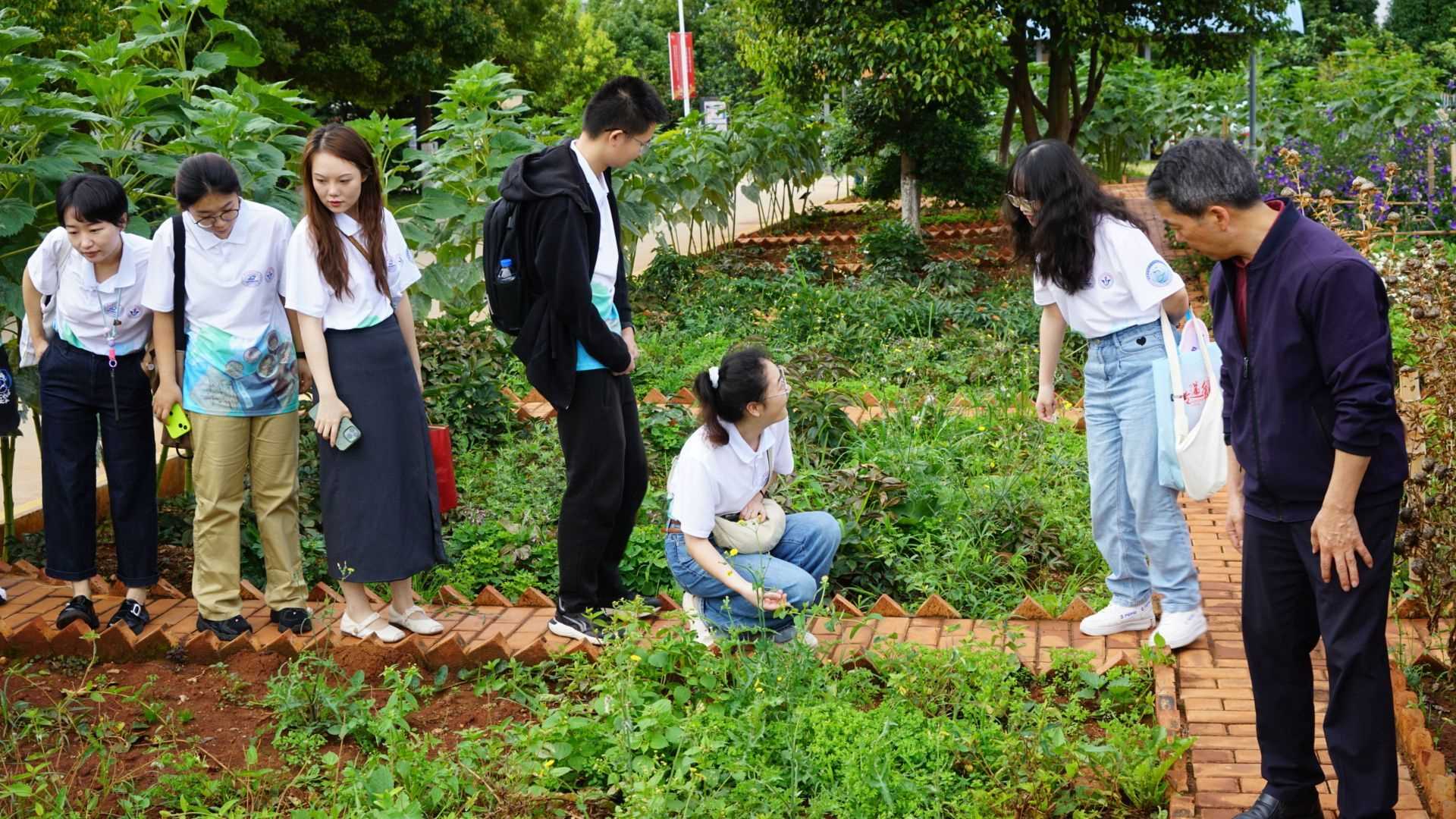 昆中藥文化總顧問楊祝慶帶領實踐隊員前往藥用植物園參觀。每一味中藥的性狀、功效、炮制在他口中都如數家珍,實踐隊員在參觀過程中認識中醫藥、熟悉中醫藥,并對與“藥食同源”的部分中藥有了初步了解。