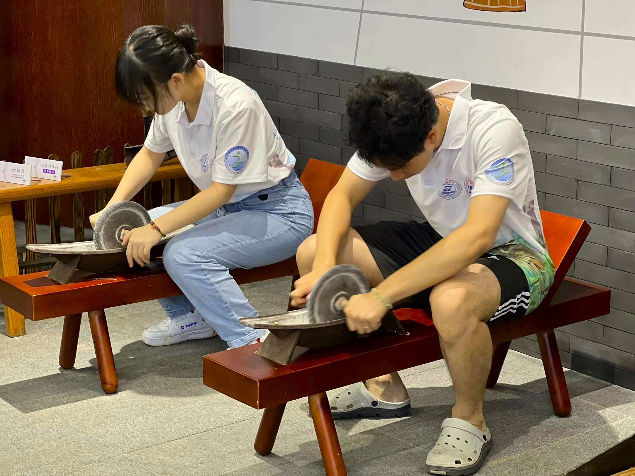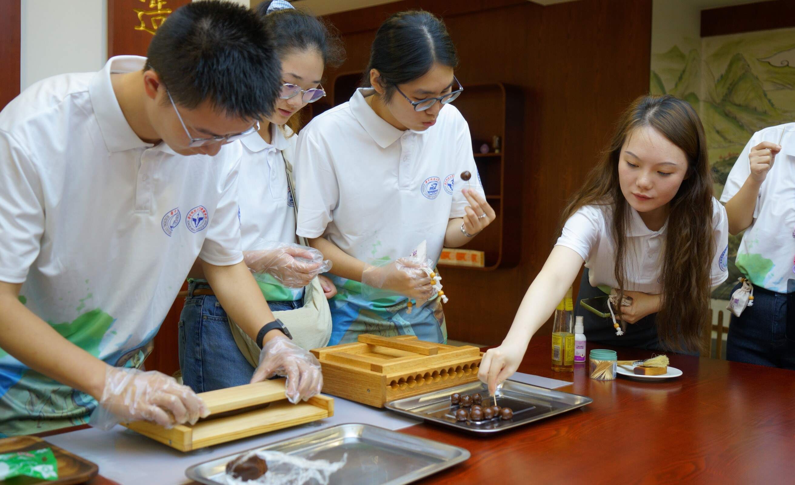 緊接著,阮云帶領實踐隊員前往體驗館體驗碾藥、篩藥、炒藥、香囊制作、手搓大蜜丸等傳統技藝。實踐隊員迫不及待地參與其中,在制作出屬于自己的香囊、搓出形狀大小相同的蜜丸的一刻,興奮之情油然而生,對手工技藝的理解也更上一層樓。