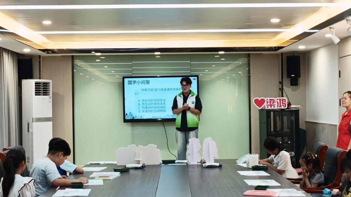 在這個充滿活力與挑戰的夏日,我有幸擔任“茵茵綠芽·國學風華”暑期社會實踐團隊副隊長、泰州片區組長,跟隨著一群懷揣著對中華傳統文化無限熱愛的青年學子,跨越城市的界限,將國學智慧的種子播撒在孩子們的心田。六月底開始,從泰州市海陵區鑫龍社區的“七彩假日”青少年暑托班再到到無錫市新吳區梁鴻社區弘揚中華傳統文化的專題活動,每一次線下實踐都令我難以忘懷,在一堂堂國學趣味課堂的精彩開展中,也讓我深刻體會到“緣聚綠芽,共筑夢想”的非凡意義。