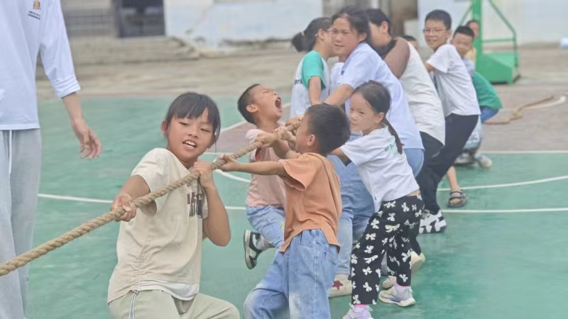 為了豐富孩子們的課余生活,啟愿支教隊特別組織了一場內容豐富的運動會,涵蓋了拔河、短跑、跳繩、跳遠等13個項目。所有學生都積極參與其中,現場充滿了歡聲笑語。在比賽中,孩子們不僅展現出色的運動才能,更學會了團隊合作與相互支持。盡管陽光熾烈,孩子們的熱情卻絲毫未減,比賽的精彩場面與他們的歡笑聲交織在一起,為這個夏天增添了許多色彩。