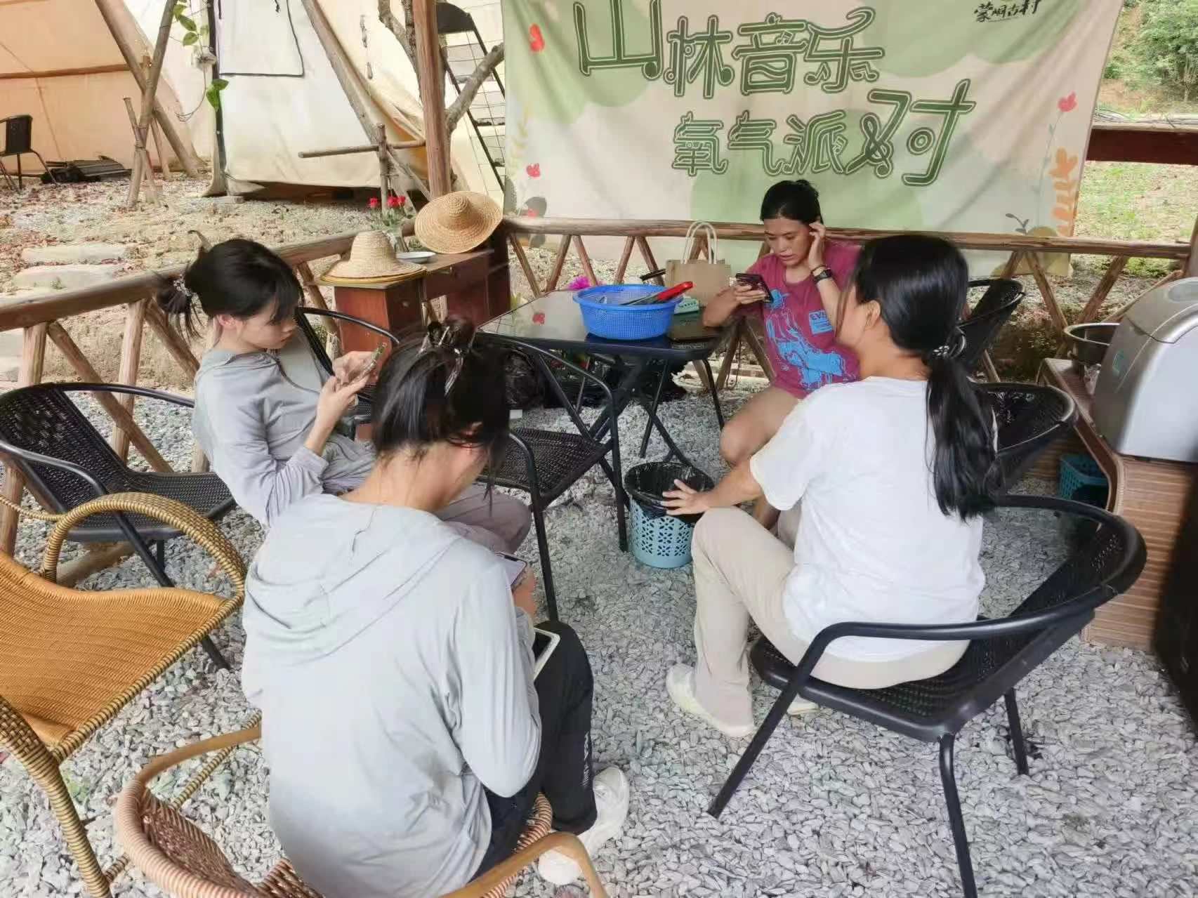 7月11日11點,實踐團來到瑤胞嬌客棧處的露天餐廳,向露營基地負責人詢問關于露營基地的發展,討論前幾天的設計方向、想法,還有可行的設計方案。從負責人的口中得知,“愛楂咋滴”露營基地正式運營的時間不長,前期主要由當地的村民設計,缺乏現代化的元素,對游客的吸引力較弱。同時,負責人也說到,她是最近幾個月才開始接手這個基地,真誠地希望通過與實踐團的合作,在不失當地特色的設計方向上,將這個基地,設計得更加現代化。努力為蒙峒古村開發新的顧客群體,增加客流量,提高當地的收入,助力鄉村振興。