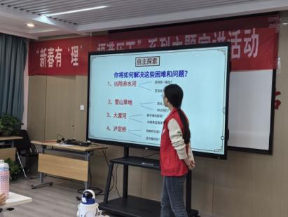 團(tuán)隊(duì)成員劉玥明在歷下區(qū)龍信社區(qū)進(jìn)行了專題講解,對支教地的孩子們上了特殊的“歷史教育課”。課程設(shè)計(jì)重點(diǎn)在“遵義會(huì)議精神”,同時(shí)拓展了原有的內(nèi)容,增加了“知識問答”“詩詞競誦”“音影賞析”等趣味互動(dòng)環(huán)節(jié)。將遵義會(huì)議放置于“紅軍長征”的歷史背景之中,努力為孩子們建立起大歷史觀,培育歷史素養(yǎng)于家國情懷,為孩子們打造了一堂富有教育意義和趣味性的紅色課程。