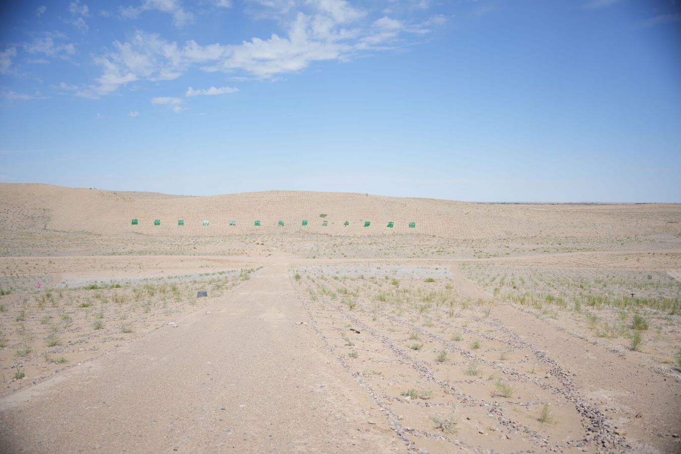 因地制宜選材料,固定沙丘平風沙。我們跟隨當?shù)剞r(nóng)科專家---薛多瑞老師,走進白刺種植基地,一顆顆被細心呵護的樹苗為治沙前線提供源源不斷的“后備軍”。我們也了解到了治沙的一般過程:在治沙前期,先壓沙;壓沙之后打沙坑,為移栽樹苗做準備;移栽完樹苗之后填沙澆水進行固定,之后再進行周期性的澆水來確保樹苗成活。