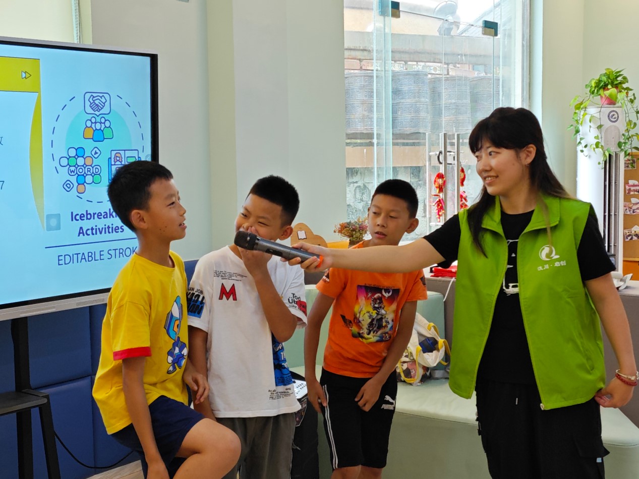 圖為志愿者與小同學展開“以物易物”課堂實踐 陳蘭 供圖