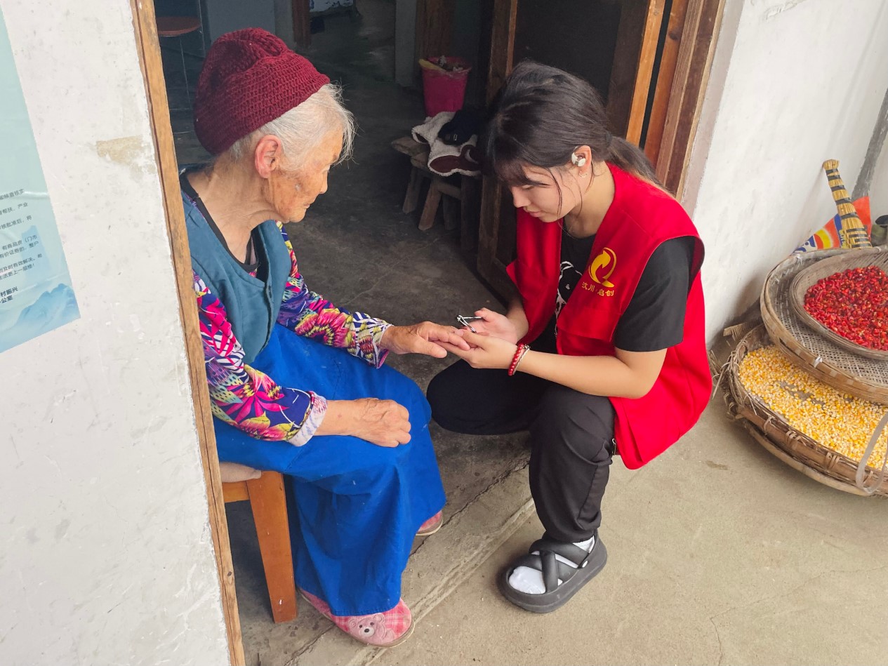 圖為志愿者為五保老人剪指甲 李舒童供圖
