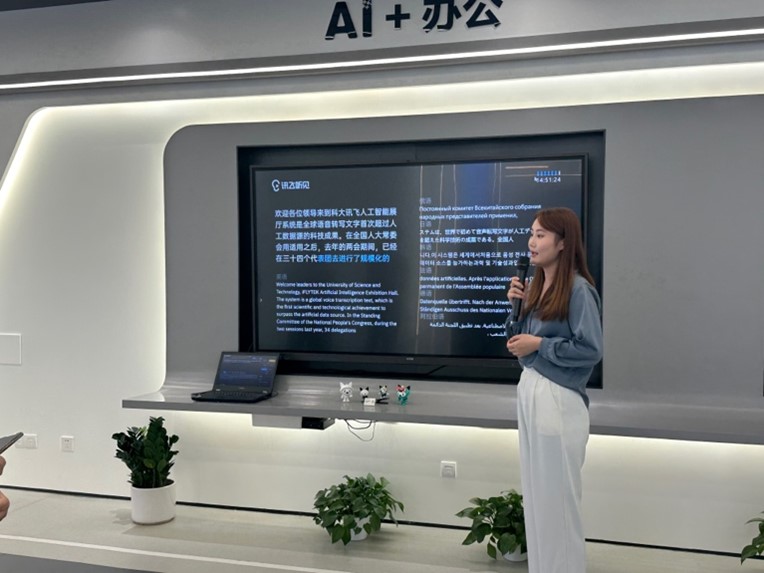 隨后,工作人員向調研隊員介紹科大訊飛“AI+”展廳。今年的兩會政府工作報告首提開展“人工智能+”行動,旨在加快發展新質生產力,深入推進數字經濟創新發展。科大訊飛作為國內人工智能行業龍頭企業,正積極推進AI技術在各個行業的深度融合應用,在此過程中,也十分注重對個人信息的保護。
