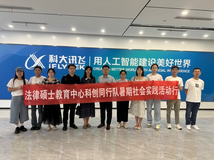 習近平總書記指出:“發展新質生產力,必須形成與之相適應的新型生產關系。”法治作為上層建筑的重要組成部分,必然為發展新質生產力提供重要的助推和保障作用。而人工智能作為前沿科技領域,在發展應用過程中,算法黑箱也會帶來用戶數據泄露、隱私權侵犯、算法歧視等倫理、安全問題。在此背景下,為深入學習貫徹習近平新時代中國特色社會主義思想,探究法治對新質生產力的重要作用,在推動人工智能發展的同時踐行個人信息保護,2024年9月,中南財經政法大學法律碩士教育中心“科創同行”暑期社會實踐隊在法碩中心學生黨總支書記易育老師帶領下,和青年教師曠涵瀟博士、輔導員馬晨嬌、周詩琪老師,兼職輔導員黃麗瓊、王勝老師一起走進科大訊飛華中總部基地開展實地調研活動。