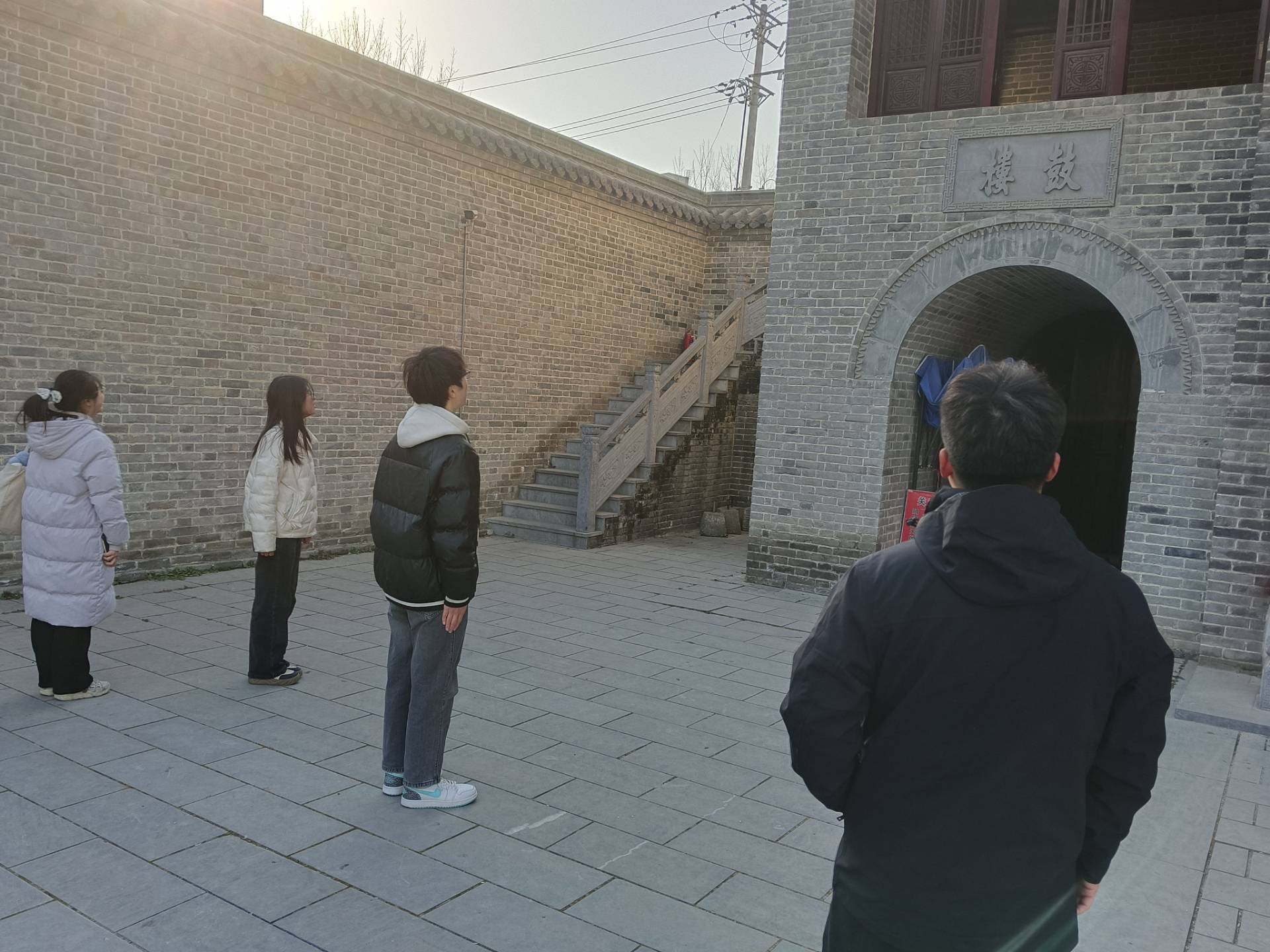 圖為實踐隊員認真欣賞鼓樓。實踐隊員王路強 供圖