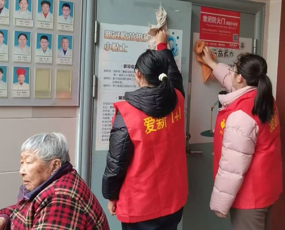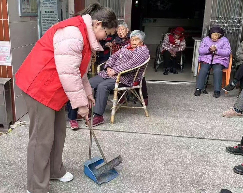 活動伊始,成員們分工協作,手持掃帚、拖把,對養老院的公共區域進行細致清潔。他們認真擦拭桌椅,清掃走廊和活動室,不放過任何角落的灰塵,力求為老人們打造一個干凈、整潔、舒適的生活環境。與此同時,團隊成員們貼心的用裝飾品布置養老院,向老人們送上新春祝福,讓溫暖的問候伴隨清潔的空間,共同營造溫馨祥和的節日氛圍。