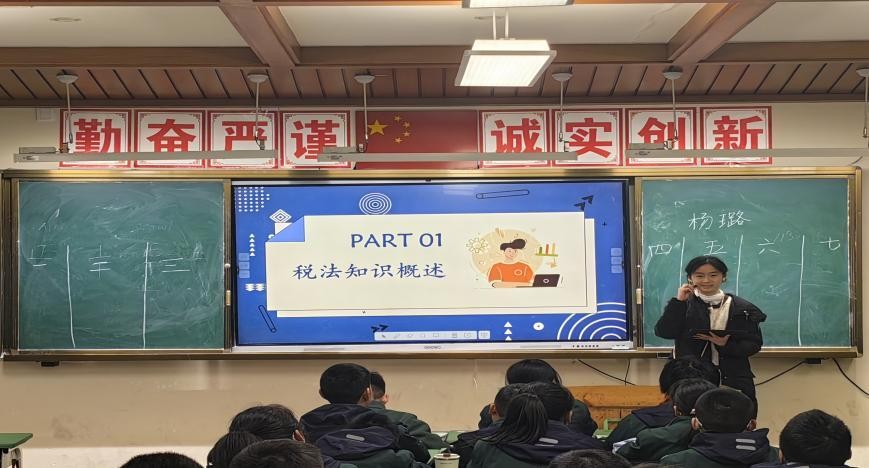 第二天的稅法課堂上,實踐隊長楊璐通過稅種分類圖系統講解增值稅、個人所得稅等常見稅種。在她的生動比喻中,學生們發現隱藏在網購標價“含稅”、工資條“個稅扣除”等生活細節里的稅收密碼。“原來稅收離我們這么近!”課堂討論中不斷迸發驚嘆。