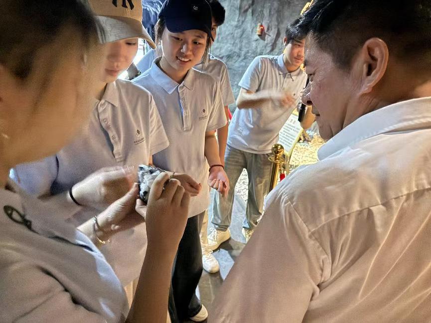 為探尋工業(yè)文明脈絡(luò),實(shí)踐隊(duì)前往礦區(qū)開展實(shí)地考察,了解采掘工藝,礦方安全員以“巖壁為書、礦燈為筆”開啟實(shí)景教學(xué)。昏暗巷道與縱深礦坑勾勒出工業(yè)文明的立體輪廓,光影交錯(cuò)間觸摸礦業(yè)發(fā)展的歷史脈絡(luò)。青年學(xué)子切實(shí)體會(huì)到到理論知識(shí)與生產(chǎn)實(shí)踐的深度融合,這堂行走在巖層間的思政課,讓青年學(xué)子在探尋工業(yè)文明的脈絡(luò)里找到了擔(dān)當(dāng)?shù)淖鴺?biāo)。
