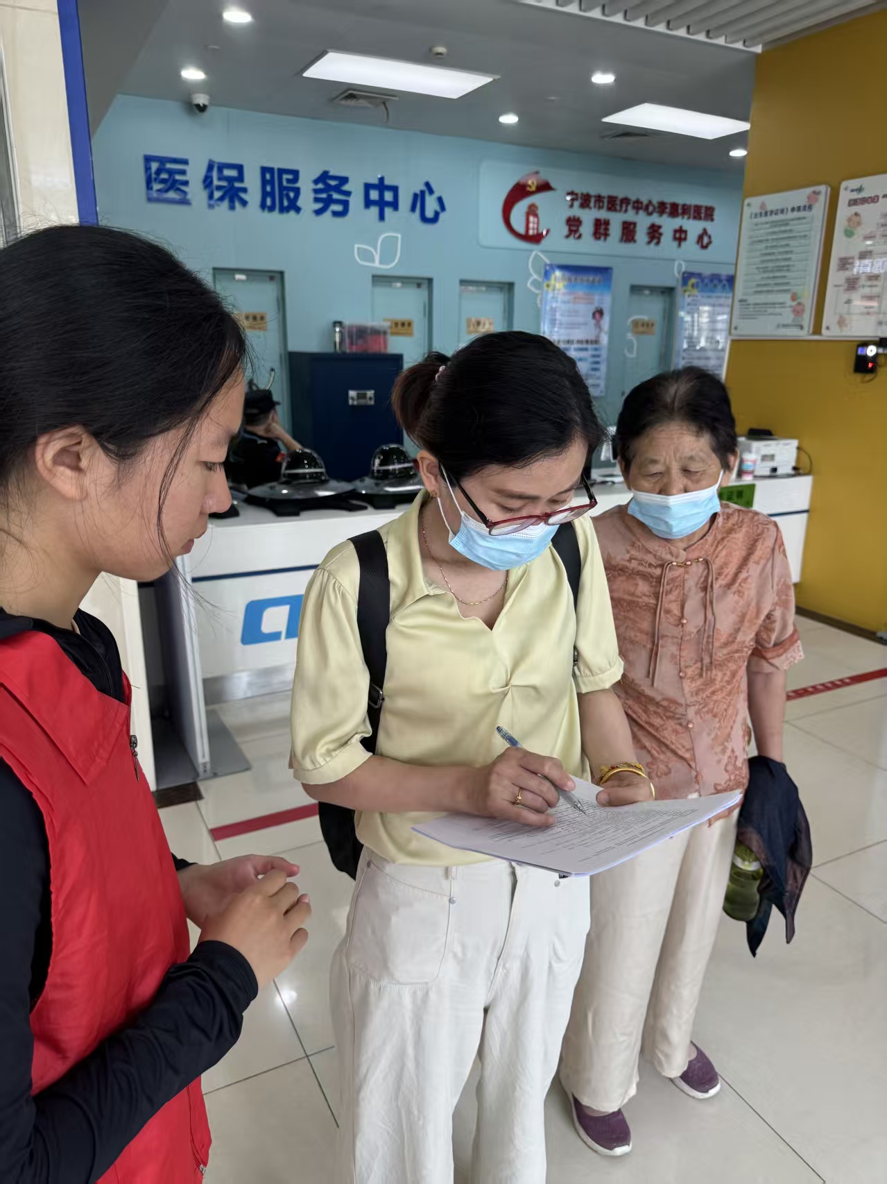 您好,請問您對寧波市的醫保政策滿意嗎?”7月2日至5日期間,在寧波市李惠利醫院和寧波大學第一附屬醫院,“醫路同行寧心隊”成員們每日都在市民身邊禮貌訪問,一邊指導填寫問卷一邊記錄痛點。這支由寧波大學醫學生組成的15人小隊,五天在兩家醫院的導診臺、輸液室、候診區攔截式訪問,并在網絡上積極宣傳網絡問卷,最終回收500份有效問卷,勾勒出市民醫保體驗的鮮活圖譜。