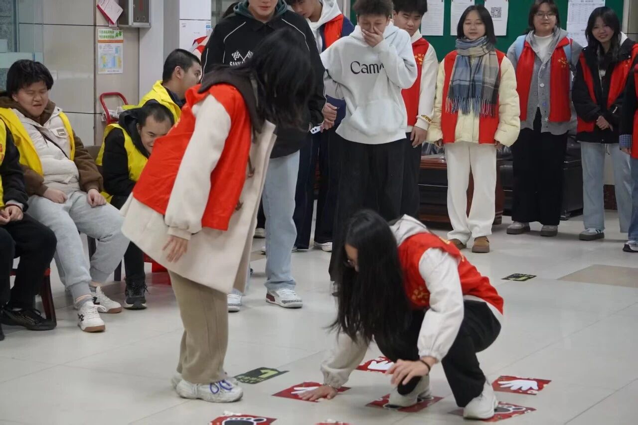 參與者站在起點線后,按照“手觸對應色區、腳踩指定色塊”的規則協調前進。同時努力保持平衡,一步步穩健前行,每個人的臉上都洋溢著克服挑戰后的自豪笑容。活動現場趣味盎然,充溢著互助的溫馨。