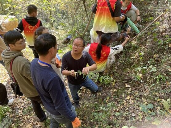 圖為團隊及帶隊老師,共同上山尋找野生黃精,并進(jìn)行采集的畫面。中國青年網(wǎng)通訊員 邵宗奇 供圖