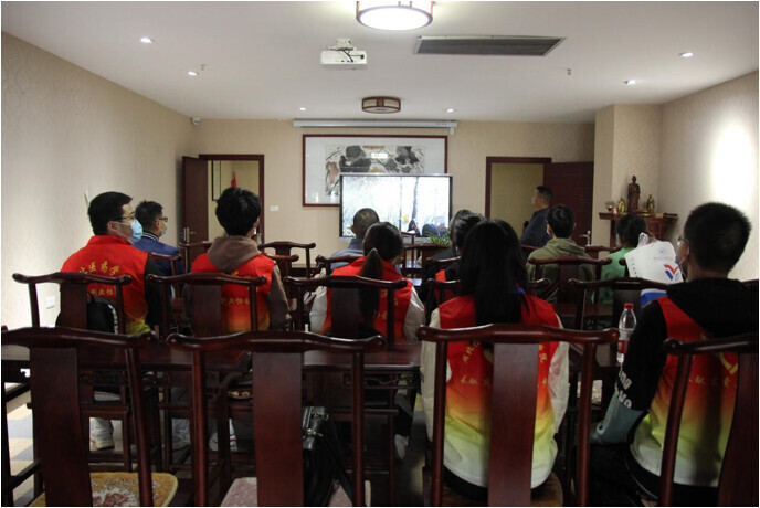 圖為學(xué)生團隊及帶隊老師在任之堂,觀看中醫(yī)村歷史,了解中醫(yī)村建設(shè)故事的畫面。中國青年網(wǎng)通訊員 何威威 供圖