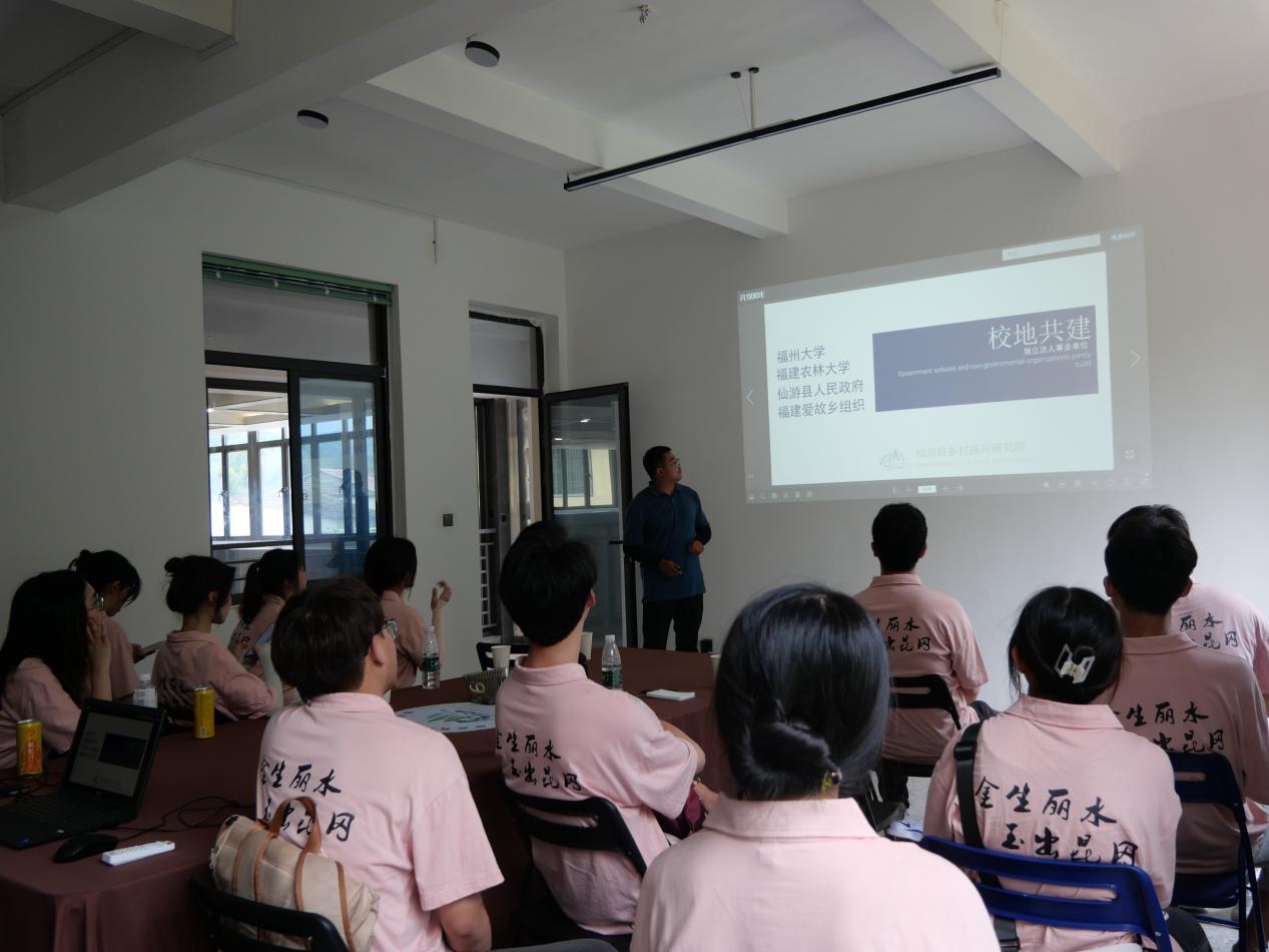 研究院數(shù)字鄉(xiāng)村部負(fù)責(zé)人蔣呂洲和研究院工作人員為實(shí)踐隊(duì)成員介紹了鄉(xiāng)村振興研究院的大體情況:研究院扎根仙游北部山區(qū),形成可推廣、可復(fù)制的鄉(xiāng)村運(yùn)營(yíng)規(guī)劃經(jīng)驗(yàn)和鄉(xiāng)村教育創(chuàng)新模式。在蔣老師的講解中,實(shí)踐隊(duì)成員了解到了新型農(nóng)村發(fā)展的可持續(xù)道路。介紹結(jié)束后實(shí)踐隊(duì)成員和研究院的工作人員進(jìn)行交流,并對(duì)未來(lái)如何加快發(fā)展、如何爭(zhēng)取數(shù)字建設(shè)支持、數(shù)字建設(shè)如何賦能鄉(xiāng)土,提出了自己的見(jiàn)解。蔣呂洲表示:“鄉(xiāng)村地區(qū)雖然土地與自然資源較豐富,但在缺少資本、人才、技術(shù)的情況下,推動(dòng)傳統(tǒng)農(nóng)業(yè)轉(zhuǎn)型升級(jí)難度較大,一些特色資源難以得到有效開(kāi)發(fā)。希望你們的到來(lái)能給我們帶來(lái)靈感,用你們的專(zhuān)業(yè)知識(shí)助力數(shù)字鄉(xiāng)村建設(shè)。”