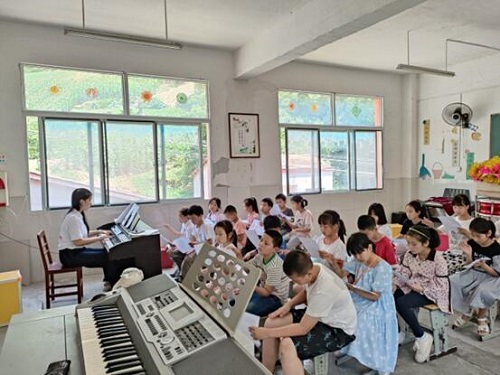 本網(wǎng)訊(通訊員 呂偉鵬)鄉(xiāng)村振興,教育先行。通過幾天的支教,志愿者老師們了解到了向壩中小學(xué)缺乏音、體、美等專業(yè)藝術(shù)教育資源后,漢江師范學(xué)院暑期“童心童行”助力鄉(xiāng)村振興社會實(shí)踐小分隊(duì)的隊(duì)員和指導(dǎo)老師于2023年7月5日前往十堰市竹溪縣向壩村中學(xué)小學(xué)進(jìn)行支教,為充分挖掘孩子們的潛力,彌補(bǔ)一定的藝術(shù)教育資源缺口,此次支教隊(duì)員特開設(shè)了諸多特色藝術(shù)課程。