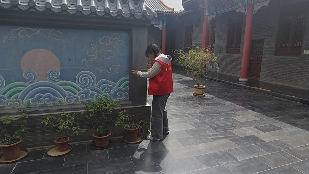 古建筑保護實踐團成員測量墻體厚度。 通訊員 宗紫慧 供圖