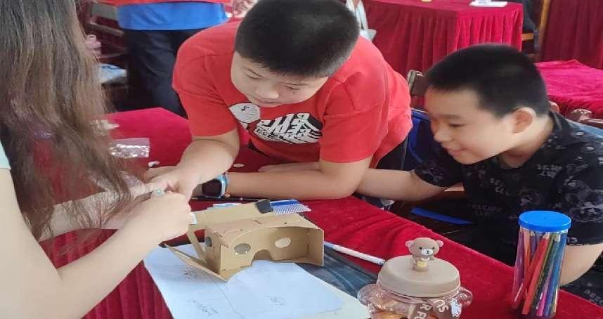 圖為實踐隊員帶領小朋友們制作VR眼鏡。通訊員 余曉冉 供圖