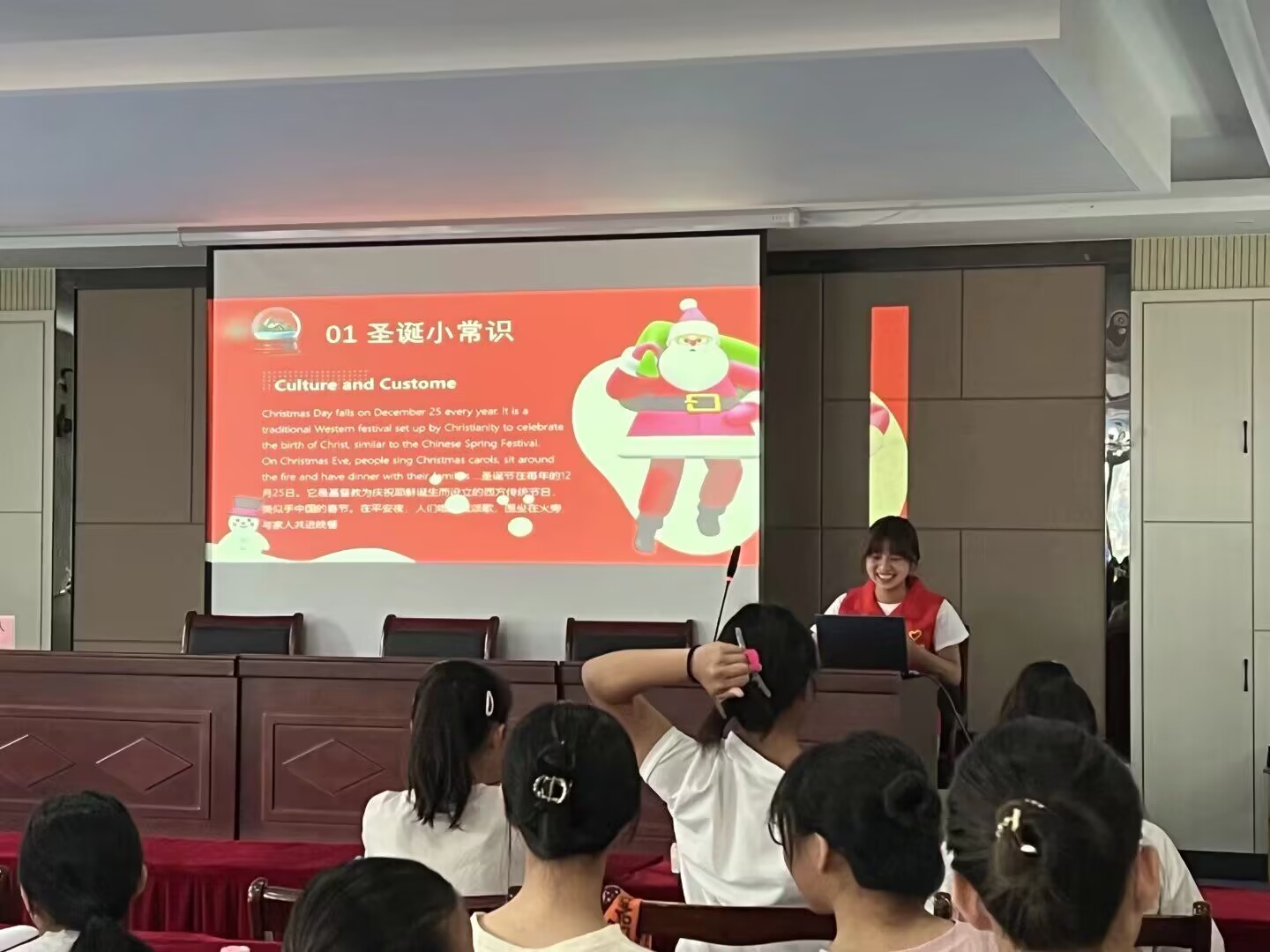 圖為實踐隊員向小朋友們宣傳中外文化知識。通訊員 司晗寧 供圖
