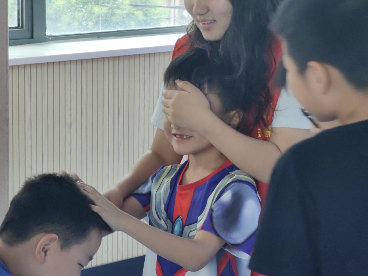 圖為志愿者和小朋友一起進行盲人摸象游戲。通訊員 余曉冉 供圖