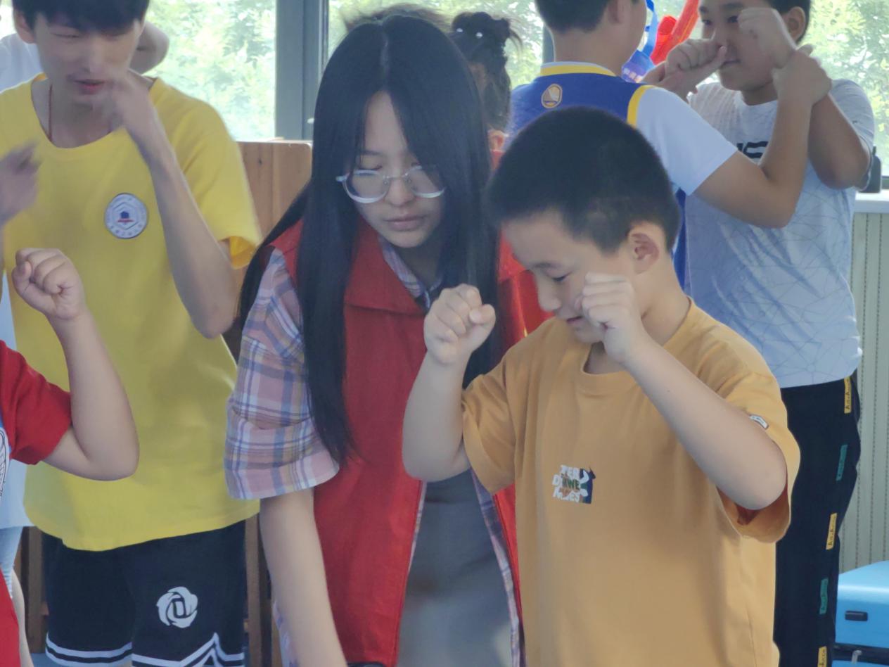 圖為志愿者幫助小朋友調整散打姿勢。通訊員 余曉冉 供圖