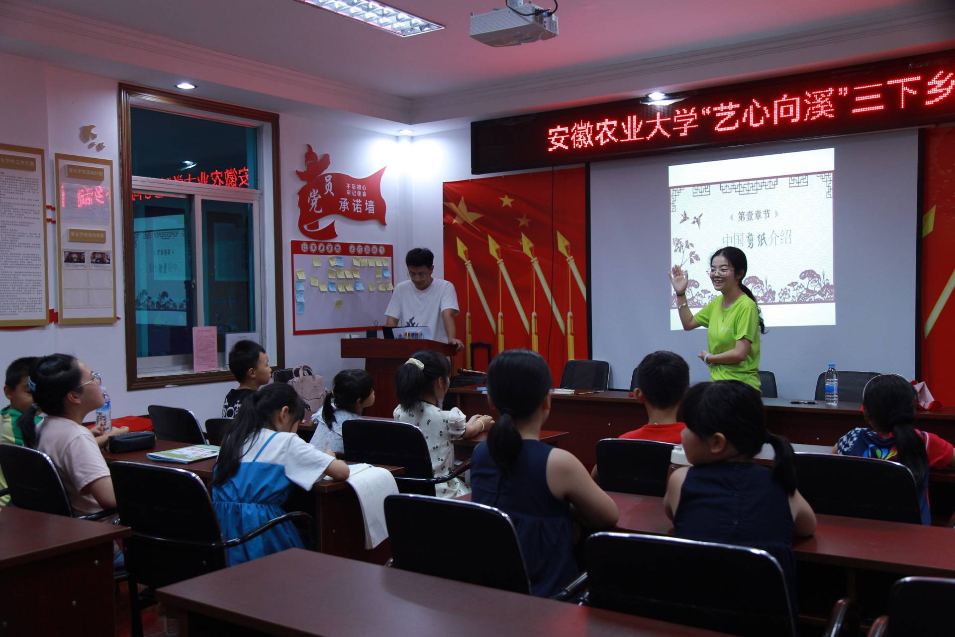 2023年7月20日上午,今天“藝心向溪”暑期實踐團的同學們分組進行活動,墻繪組正式開始上色,支教組的同學們為下午的剪紙課做熟悉PPT的備課準備。