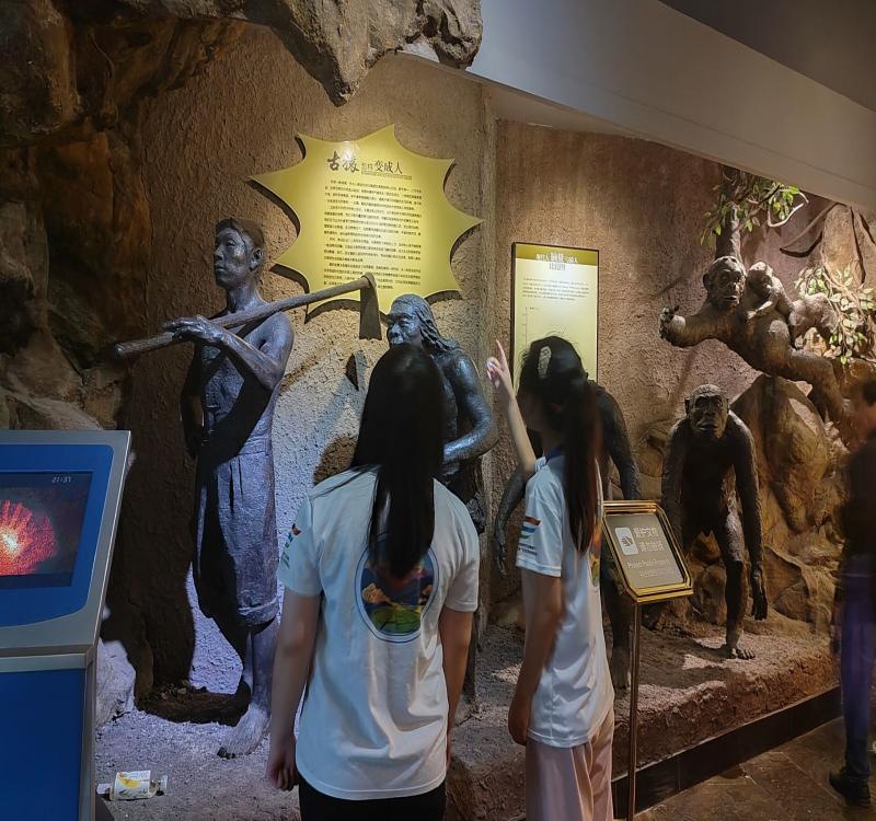 人類是由古猿進化而來的。距今約一、二千萬年前,全球范圍內(nèi)出現(xiàn)造山運動,地理環(huán)境和氣候發(fā)生了劇烈的變化,植被產(chǎn)生巨大改變,森林減少了,猿類不得不尋找新的生活環(huán)境,其中有一支高度發(fā)達的猿類——古猿,被迫用越來越多的時間在林外的地面上尋找食物。大約在三、四百萬年前,人類出現(xiàn)了。人類的發(fā)展經(jīng)歷了早期直立人、晚期直立人、早期智人、晚期智人,一直到現(xiàn)代人的進化旅程。6月18日,湖北汽車工業(yè)學(xué)院外國語學(xué)院“探憶·裕農(nóng)”暑期社會實踐團隊來到十堰市博物館,了解人類的進化史,探索遠古人類家園。