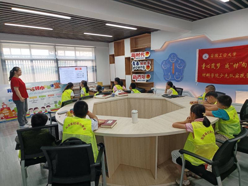 為學(xué)習(xí)黨二十大精神,培育愛黨愛國(guó)情懷,安徽工業(yè)大學(xué)材料科學(xué)與工程學(xué)院“童心筑夢(mèng),成“材”向黨”實(shí)踐隊(duì)在7月3日至6日先后來到馬鞍山市市圖書館、當(dāng)涂縣紅領(lǐng)巾課堂開展“少先隊(duì)實(shí)踐營(yíng)”暑期實(shí)踐專項(xiàng)活動(dòng)。此次活動(dòng)旨在向小學(xué)的同學(xué)們普及少先隊(duì)和團(tuán)史知識(shí),培育愛黨愛國(guó)情懷,將紅色基因根植于心。在實(shí)踐過程中,實(shí)踐營(yíng)成員向同學(xué)們進(jìn)行了理論宣講,同時(shí)進(jìn)行了問答互動(dòng)環(huán)節(jié),宣講的最后實(shí)踐隊(duì)員與同學(xué)們共同完成了簡(jiǎn)易升國(guó)旗的手工作品,同學(xué)們都自行行少先隊(duì)禮。