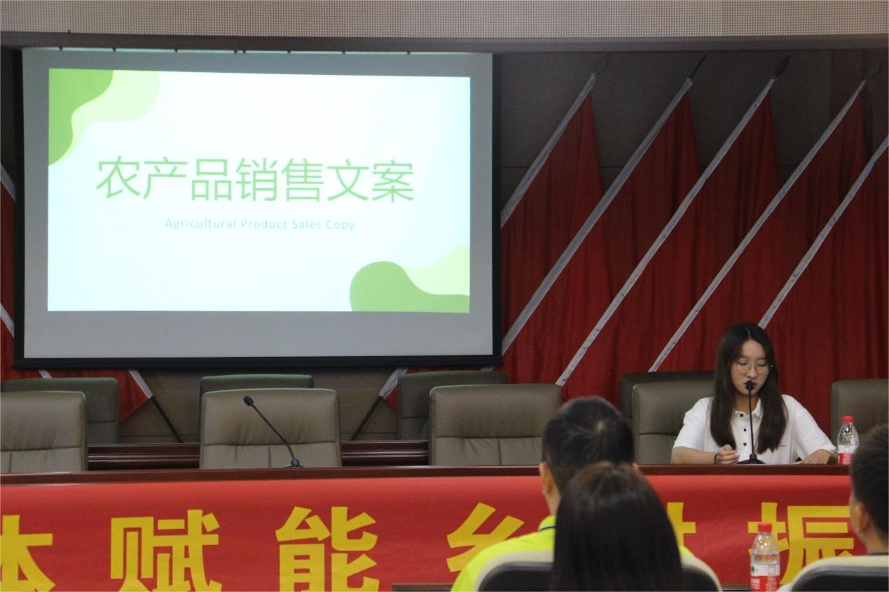 圖為實踐團成員傅荃蕙同學講解農產品營銷文案撰寫技巧