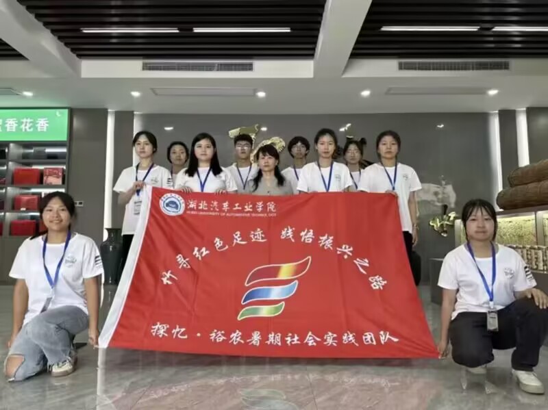 06圖為社會(huì)實(shí)踐隊(duì)員與圣水茶場(chǎng)負(fù)責(zé)人合影。湖北汽車工業(yè)學(xué)院提供