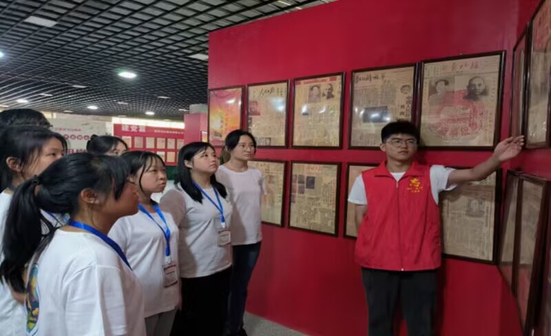 培長(zhǎng)報(bào)紙博物館館共收藏有各類報(bào)紙5000多種,15萬份, 從黨的七大報(bào)紙開始,一直到黨的二十大報(bào)紙,連接起一個(gè)跨越年齡、年代的歷史輪廓。實(shí)踐隊(duì)員們被眼前琳瑯滿目的各類報(bào)紙?bào)@艷,對(duì)“沒有共產(chǎn)黨就沒有新中國(guó)”的集報(bào)展深感興趣。《新華日?qǐng)?bào)》、《人民日?qǐng)?bào)》、《湖北日?qǐng)?bào)》等標(biāo)志性報(bào)紙記載著中國(guó)人民浴血奮斗求解放、豪情滿懷建設(shè)中國(guó)特色社會(huì)主義的偉大歷程。73歲的程培長(zhǎng)館長(zhǎng)用心良苦,花了四十年心血辦起了報(bào)紙博物館,收集整理出了一部中國(guó)共產(chǎn)黨的成長(zhǎng)史。社會(huì)實(shí)踐隊(duì)員們?cè)谝粡垙埍痪氖詹氐膱?bào)紙中重溫紅色記憶,接受精神洗禮。