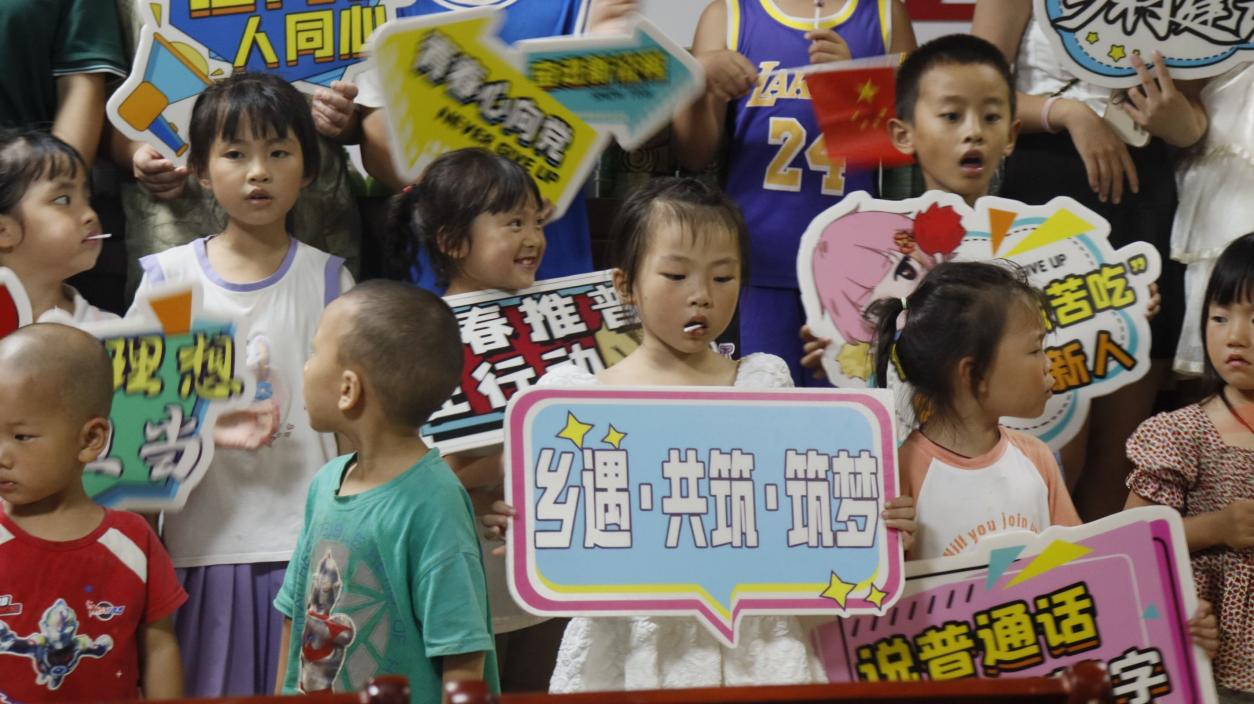 在文藝晚會(huì)之余,“篤行”團(tuán)隊(duì)也積極開展推廣普通話的活動(dòng)。志愿者們與村民親切交流,倡導(dǎo)使用普通話,希望通過這樣的活動(dòng)推動(dòng)普通話在農(nóng)村地區(qū)的普及與應(yīng)用。尤其引人注目的是,學(xué)生志愿者們與小朋友們一同參與了有趣的推普小游戲,比賽中現(xiàn)場互動(dòng),小朋友們歡聲笑語中學(xué)到了更多普通話知識。活動(dòng)在一片歡樂中達(dá)到了高潮。最后,學(xué)生志愿者們與村民們共同合影留念,記錄下這個(gè)特別時(shí)刻,這張合照不僅是美好時(shí)刻的定格,更是友情與情感的見證。通過這次難忘的交流,篤行團(tuán)隊(duì)與紅溪村名們在心靈上架起了一座堅(jiān)實(shí)的橋梁。