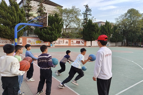 活動過程中,負責特色主題課堂的志愿者以“多姿多彩的民族文化”為教學核心,通過圖文并茂的幻燈片展示,生動有趣的講解,詳細地向小學生介紹了我國各民族的特色文化。小學生們也迅速投入課堂,并積極舉手回答問題,感受民族文化的魅力。在體育課堂上,志愿者身體力行,示范和指導正確的籃球動作技巧;組織小學生們分小組練習健美操,培養團隊合作意識;開展寓教于樂的教學游戲,激發他們的興趣并提高課堂參與度,使他們在愉快的氛圍中學習動作技巧。