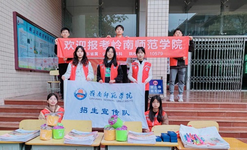 除了擺攤宣傳,領先小隊還分批進行了行動中的宣傳。首先是校園行走宣傳,通過對過往的同學們派發(fā)宣傳手冊,進行簡要的學校介紹,初步提高同學們對于嶺師的熱情,再引領學生去到攤位 ,進行細致地介紹與宣傳。其次便是進班宣傳,通過對不同班級的選科了解 ,隊伍派出四人進班面對面宣傳,以ppt的形式全面的講解了嶺師的學校特色、專業(yè)分類、校園生活、發(fā)展規(guī)劃等;而視頻的播放與分享則有趣的展現(xiàn)了嶺師校園風貌和豐富的校園生活,之后,隊伍還以問答互動和游戲互動的形式提高同學們的參與熱情,將精美的紀念品分發(fā)給同學們,加深他們對大學生活的向往,并使他們進一步了解了不一樣的一所大學,豐富了他們的大學選擇。