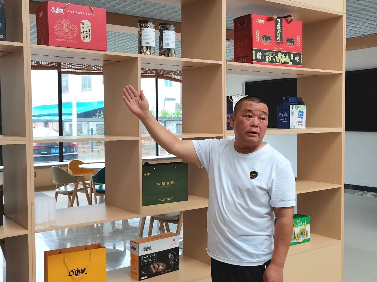 圖為工作人員介紹杉林灣村生產(chǎn)成果。 唐嬌月 攝