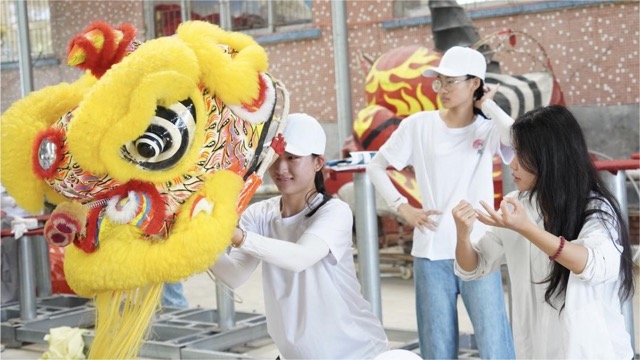 次日,即7月16日,突擊隊的活動進一步升級,他們親身體驗了醒獅扎作這一精細而復雜的傳統工藝。從選材、扎架、貼紙、上色到最后的潤色裝飾,每一步都凝聚著匠人的心血與智慧。隊員們親手參與醒獅的扎作環節,從陌生到熟悉,從笨拙到熟練,不僅學會了醒獅制作的基本技能,更深刻理解了傳統手工藝的價值與魅力。這一過程,不僅是對傳統文化的傳承,更是對鄉村振興中文化自信的增強。