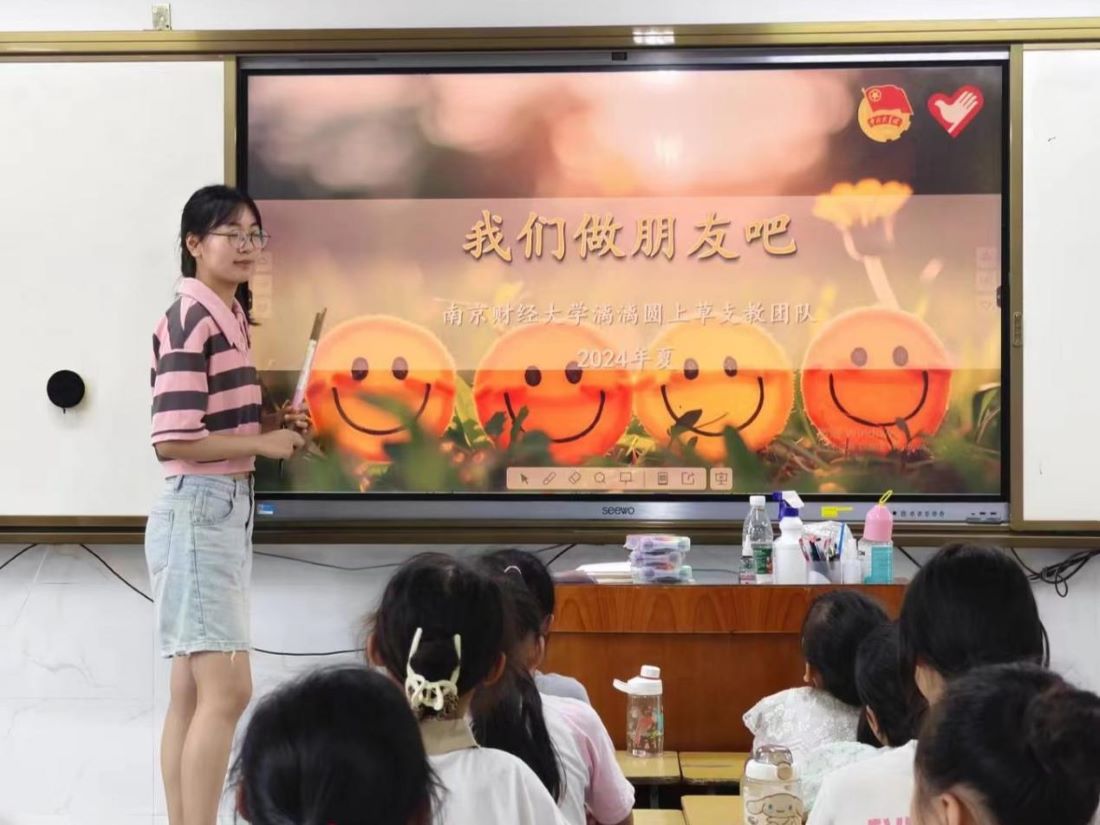 7月18日,一場以“朋友”為主題的情緒輪盤活動在靈川縣海洋鄉中心小學的教室里歡樂展開。來自南京財經大學的“漓漓圓上草”支教團隊的志愿者們與當地孩子們共同參與了這次友情教育活動,旨在激發孩子們的情感表達能力的同時深化對朋友情誼的理解。該活動主要由南京財經大學會計學院的陳妍和國際經貿學院的哈國明教授。活動中,孩子們在老師的啟發下,用彩筆繪制出一個個充滿創意、色彩斑斕的情緒輪盤。通過這次繪畫情緒輪盤的活動,孩子們更加生動地感知和領悟朋友相處時的多樣情緒,體會友情的珍貴,樹立起了珍惜朋友的意識。