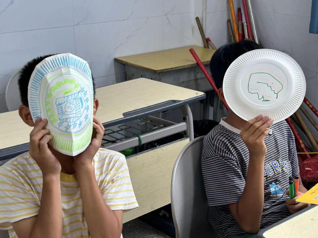 圖為莫皓楊小朋友和李詠彬小朋友展示情緒輪盤作品 吳肖婭 攝