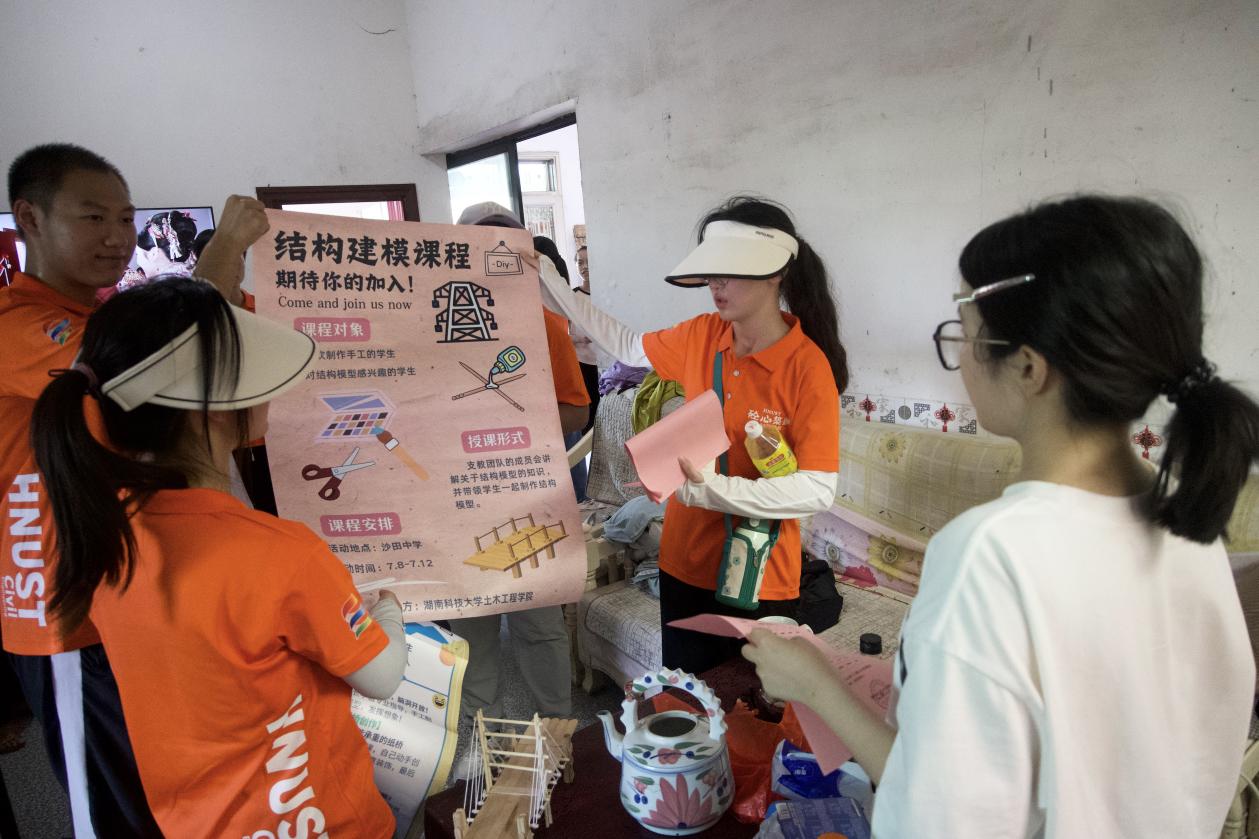 圖為志愿者邀請當地學生參加結構建模課程。中國青年網通訊員 龍翔 供圖