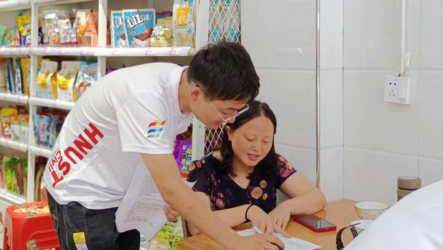 圖為志愿者為居民解答助學政策相關困惑。中國青年網通訊員 龍翔 供圖