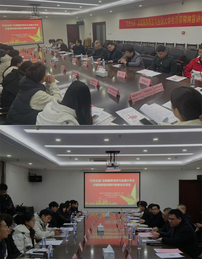 為深入學習宣傳貫徹習近平新時代中國特色社會主義思想和黨的二十屆三中全會精神,以“強國復興有我”群眾性主題宣傳教育活動弘揚沂蒙精神,2025年1月16日,臨沂瑯那社工志愿服務隊召開的全國大學生沂蒙精神宣講團代表座談交流會組織開展。山東省志愿服務聯合會理事、沂蒙精神傳承人、中共臨沂市蘭山區委宣傳部宣講團成員尹志林作為特邀嘉賓出席交流會。曲阜師范大學“青春沂蒙行”志愿宣講團等20余支全國大學生沂蒙精神志愿宣講團代表參加,會議由2019年西部計劃志愿者梁金鵬主持。