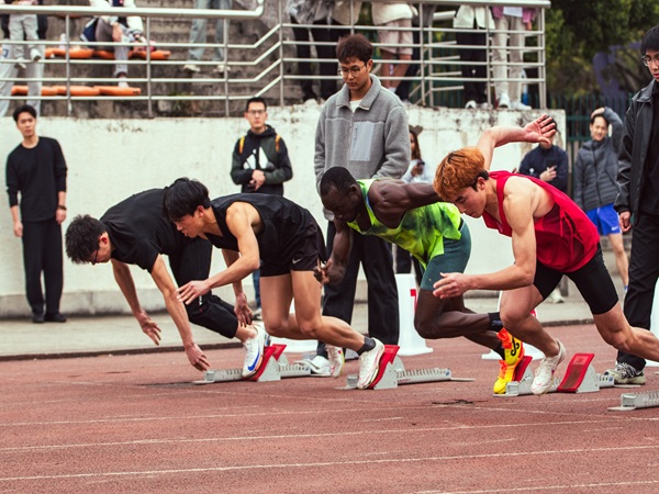清晨7:30,青志協后勤組的志愿者們已抵達運動場。他們手持清單穿梭于器材室,將川劇變臉表演所需的鼓架、臉譜道具逐一搬運至候場區。“演員的頭飾需要輕拿輕放,第三箱道具標記為‘緊急備用’!”組長通過對講機反復確認。8:20,禮儀組志愿者身著統一制服,在入場處為外國留學生遞上中英文雙語的賽程手冊,并用貼紙區分教工與學生參賽方陣。開幕式后,教職工100米預決賽成為首個高潮。檢錄處志愿者手持名單逐一核對參賽教師信息,為戴眼鏡的教授貼上防滑鼻托,替老教師系緊鞋帶;發令槍響前,2名志愿者跪地檢查每一道跑道的起跑器穩定性。 “張老師,第四道!注意壓線!”賽道旁,志愿者舉著手寫提示牌為沖刺階段的教授們指引方向。在4×100米接力賽中,志愿者在交接棒區域拉起熒光警戒帶,反復提醒圍觀學生保持安全距離。學生賽場上,志愿者的身影與選手們并肩前行。