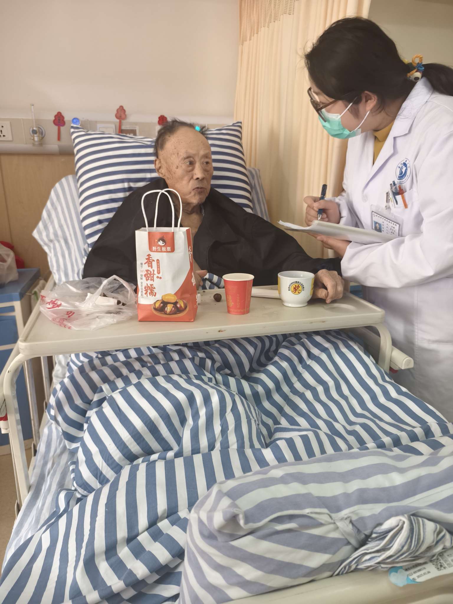 圖為團(tuán)隊成員對住院隨遷老人進(jìn)行相關(guān)調(diào)研 通訊員方瑜 攝