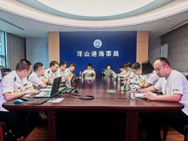 圖為蔚藍燃夢實踐隊與洋山港海事局工作人員進行座談交流