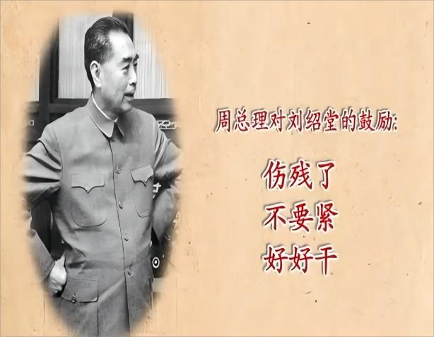 周恩來總理用九個字勉勵他:“傷殘了,不要緊,好好干!”這簡單的九個字,成為了劉紹堂終生奮斗的座右銘。